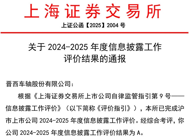 合規為基 價值為本 行穩致遠丨晉西車軸榮獲滬市信息...